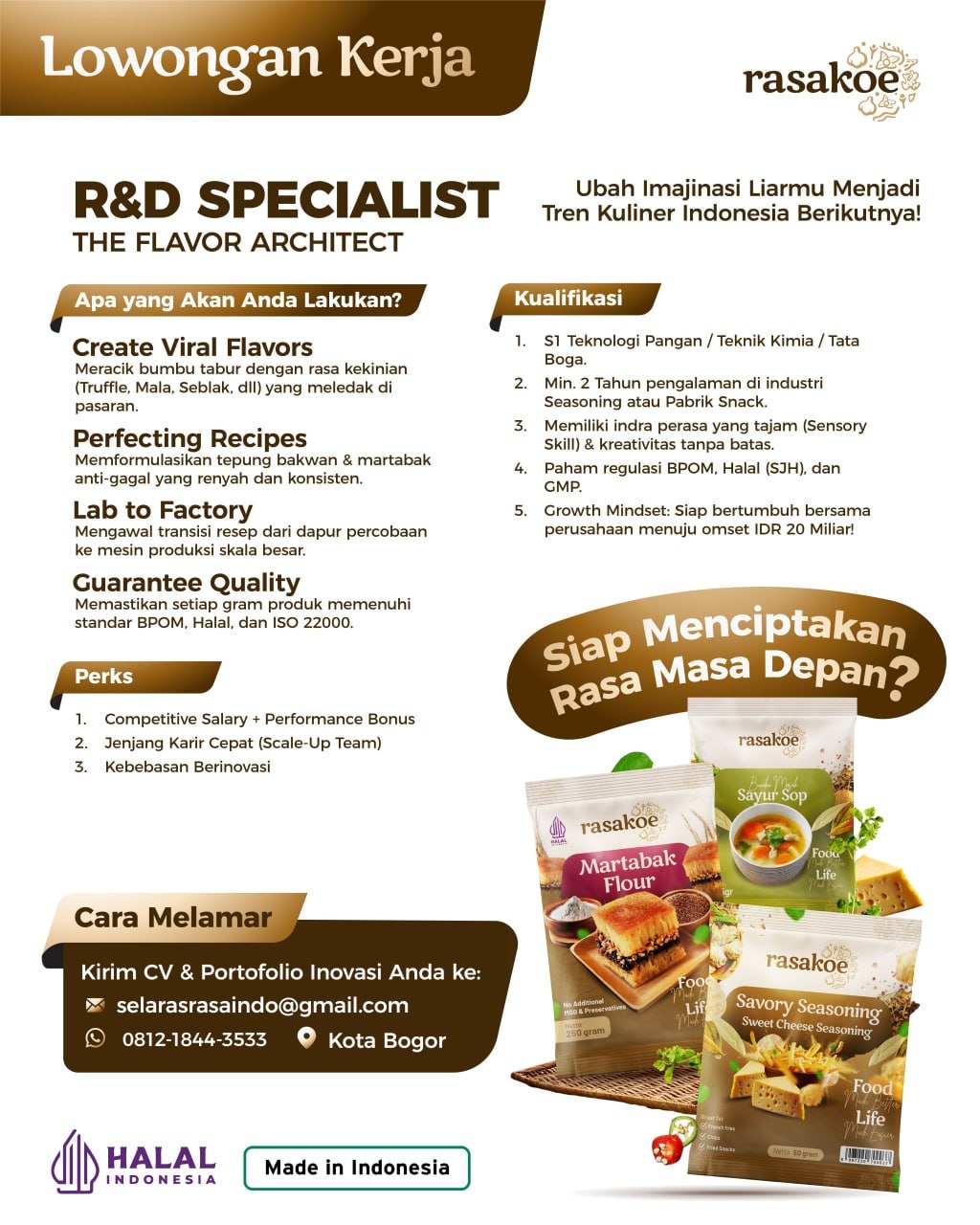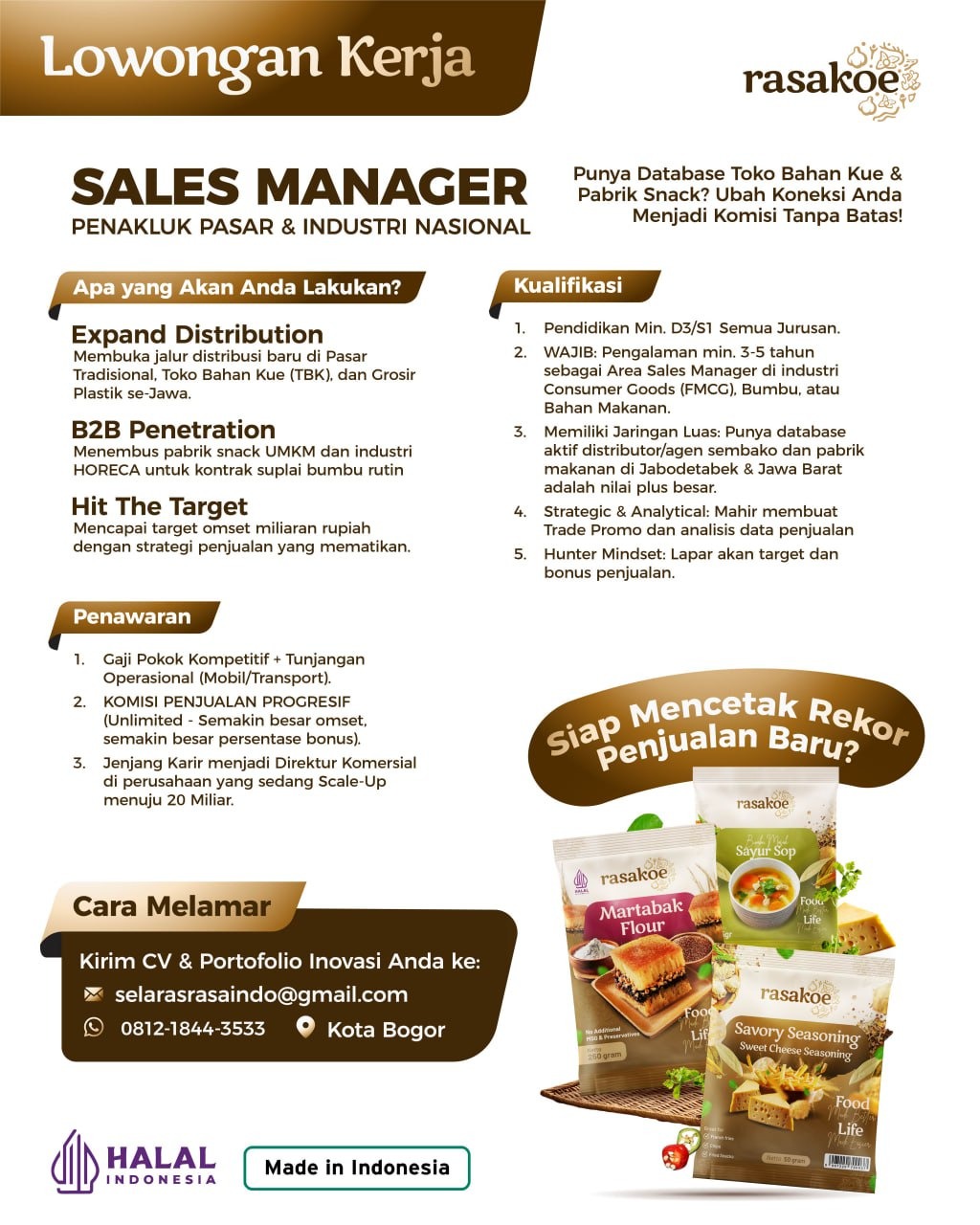 + Pengalaman di bidang memasak atau memiliki hobi memasak menjadi nilai tambah